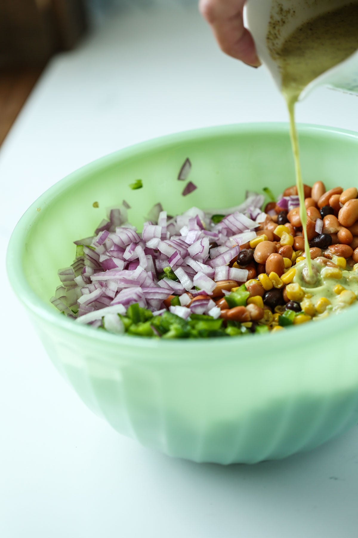 - Easy to prepare. Other than some veggie prep - dicing up onions, peppers, and tomatoes - this is one of those "toss it in a bowl and mix" type recipes. I recommend using my super simple Jalapeno Lime Dressing, which requires minimal ingredients, but does require a food processor or blender to execute - because you're blending a fresh jalapeno right into the dressing.